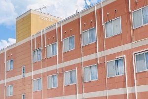 パンションホテルは北上駅より徒歩約7分の立地にあり、オレンジ色の外観が目印です🍊